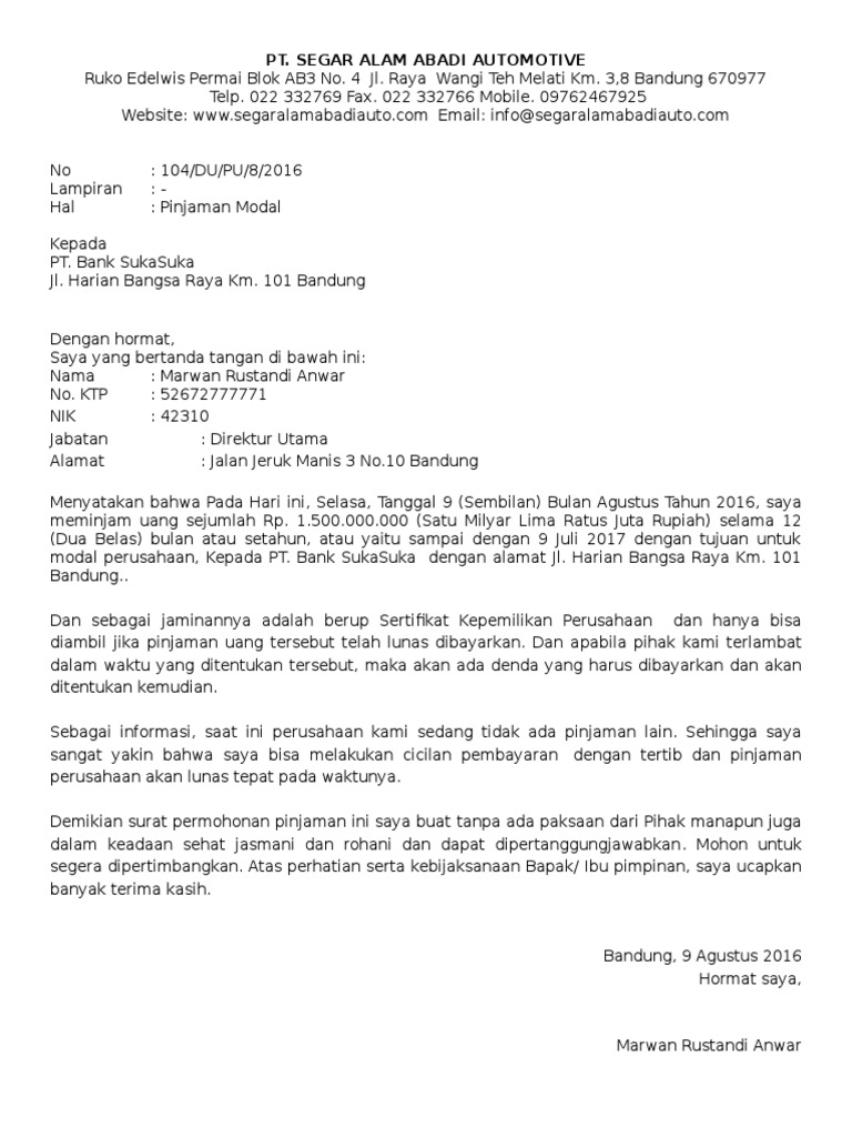 Contoh Surat Permohonan Pinjaman Uang Ke Perusahaan Pdf