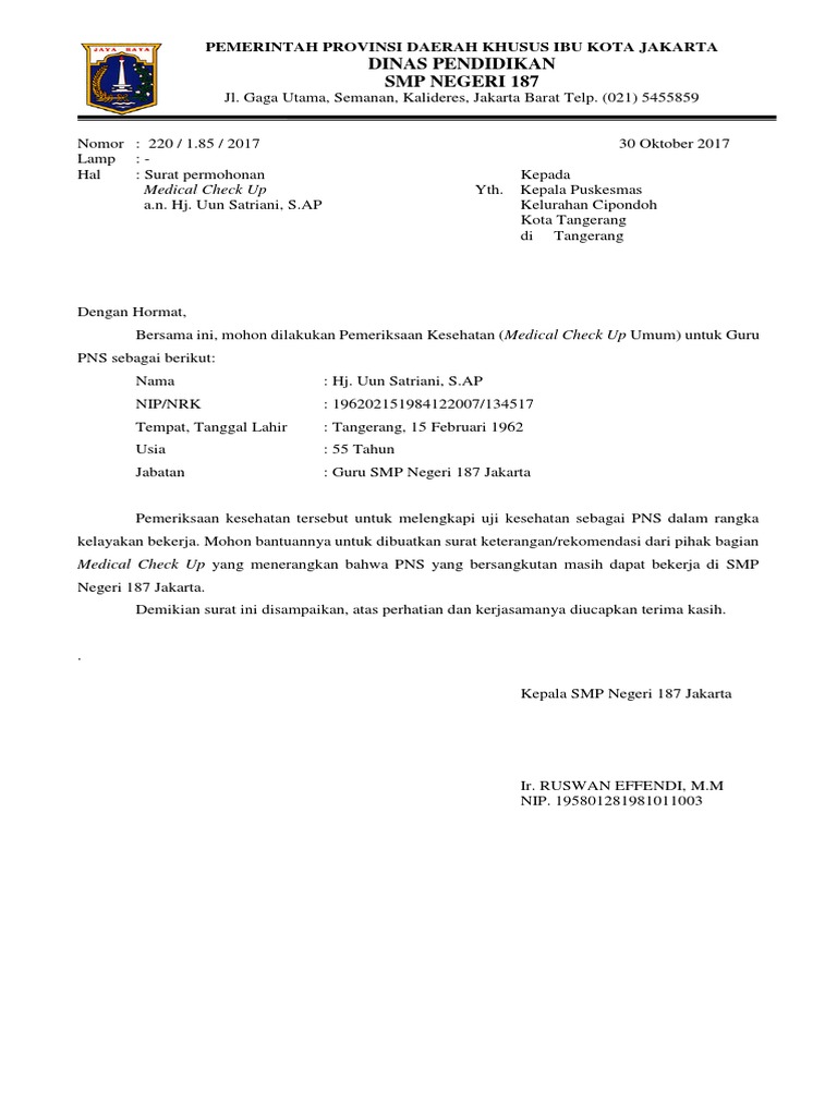 Detail 17 Contoh Surat Pengantar Medical Check Up