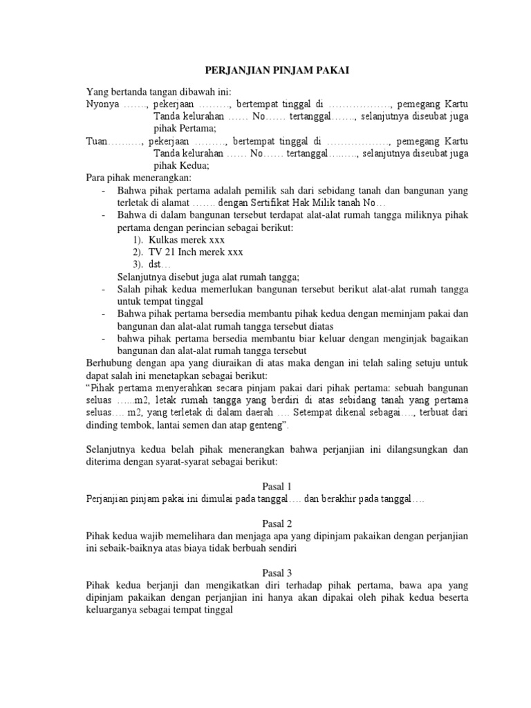 Contoh Surat Perjanjian Pinjam Pakai Rumah Pdf