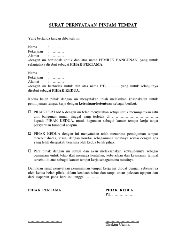 Draft Pernyataan Pinjam Tempat Pdf