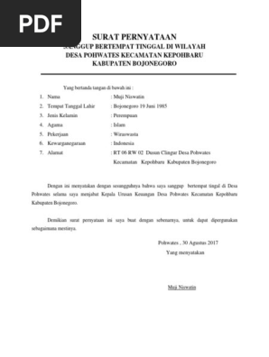 Surat Pernyataan Sanggup Bertempat Tinggal Di Wilayah Desa Setempat - Kumpulan Surat Penting