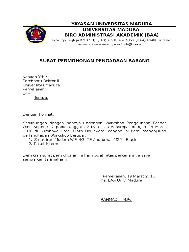 Contoh Surat Pengajuan Pengadaan Barang Ke Pimpinan - Contoh Seputar Surat