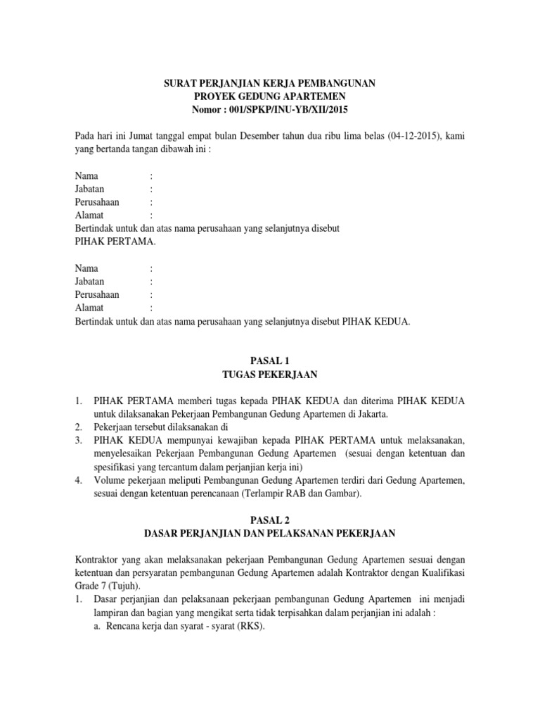 Surat Perjanjian Kerja Pembangunan Apartemen Pdf
