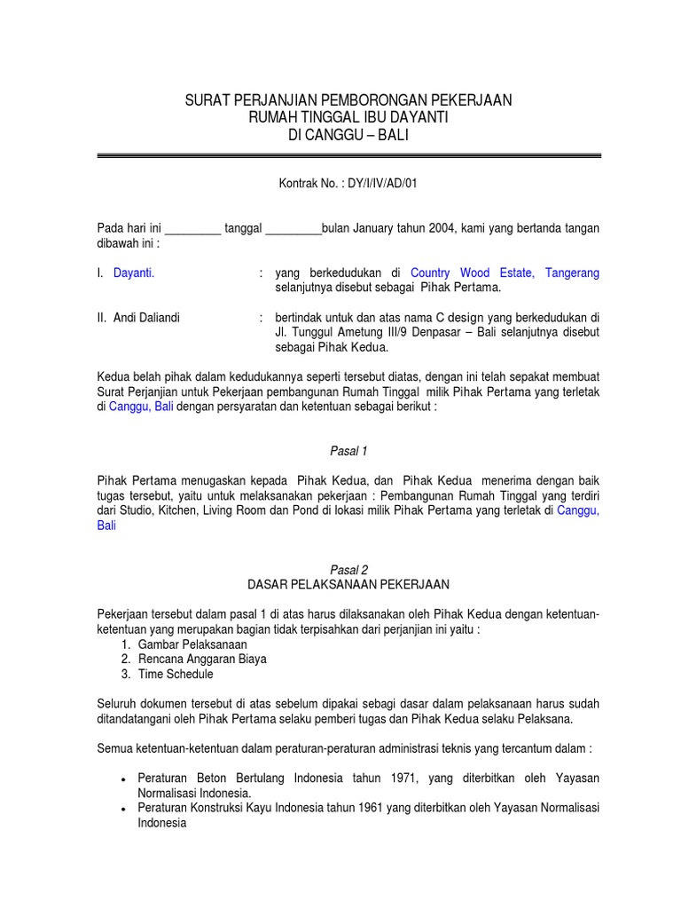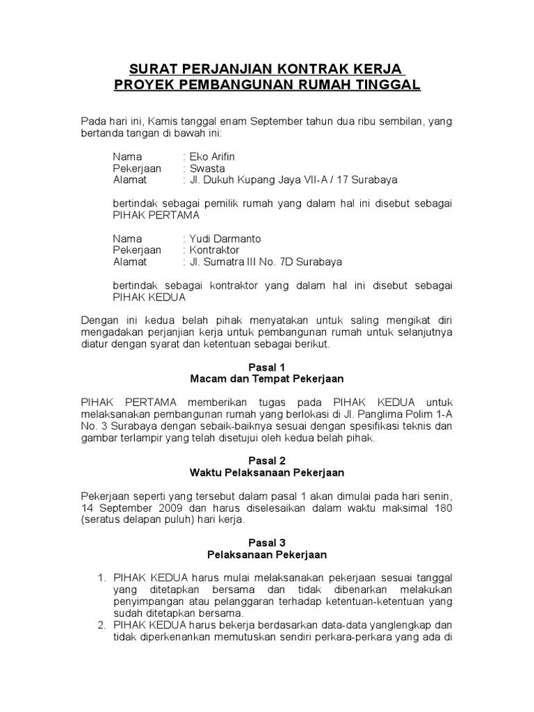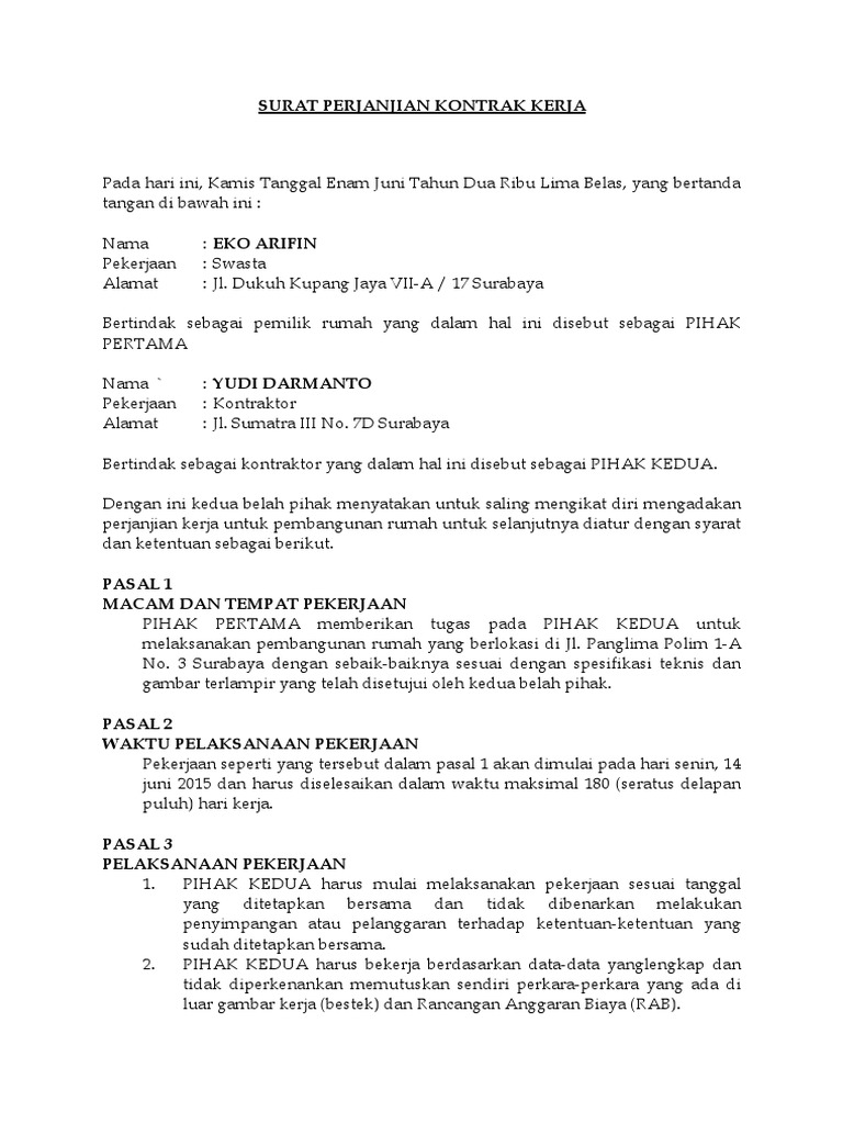 Surat Perjanjian Kontrak Kerja Pembangunan Rumah Pdf