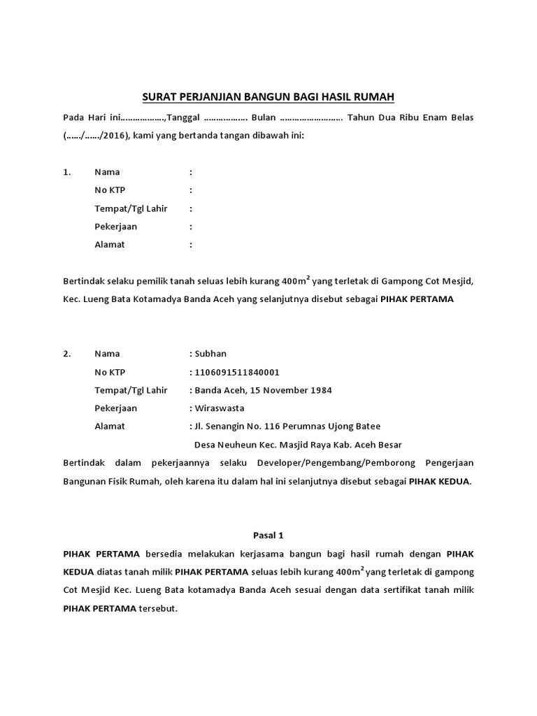 Surat Perjanjian Bangun Bagi Hasil Pdf