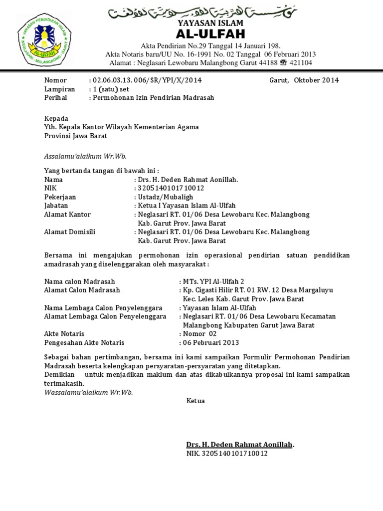Ijin Operasional Madrasah Format Pm01 Pdf