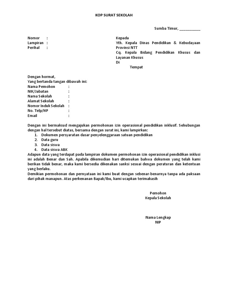 Contoh Surat Permohonan Izin Operasional Sekolah Inklusif Pdf