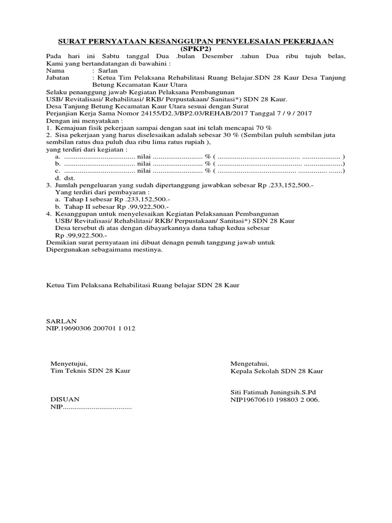 Dalam bentuknya jika disebutkan secara lisan pernyataan sulit untuk dapat dibuktikan kecuali bila ada saksi. Pernyataan kesanggupan menyelesaikan pekerjaan berikut ini anda bisa lansung copypaste surat pernyataan kesanggupan menyelesaikan pekerjaan ini untuk. Pernyataan kesanggupan dari penyedia barang/jasa untuk menyelesaikan sisa pekerjaan;