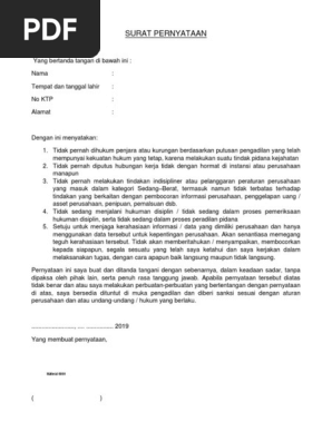 Surat Pernyataan Karyawan Baru 2019 Pdf