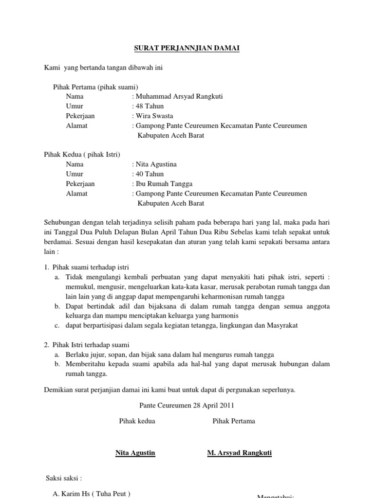 Surat Perjanjian Damai Kekeluargaan Pdf