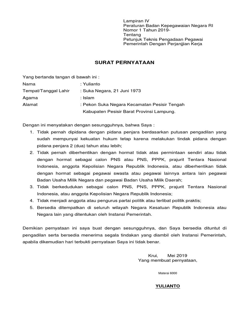 Surat Pernyataan Pns - Terdapat dua surat pernyataan yang harus diisi oleh calon. 100% menganggap dokumen ini bermanfaat, tandai dokumen ini sebagai bermanfaat.
