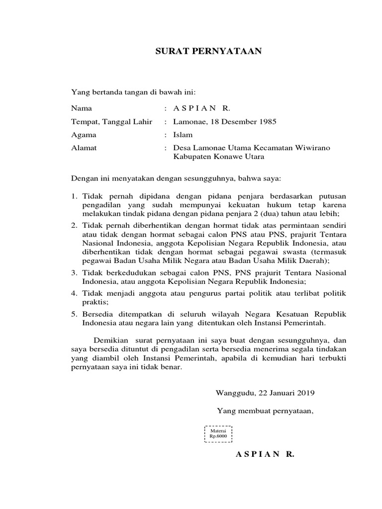 Contoh Surat Pernyataan Cpns 2021 Tidak Akan Pindah Tugas - Sijori Kepri Sumber Informasi