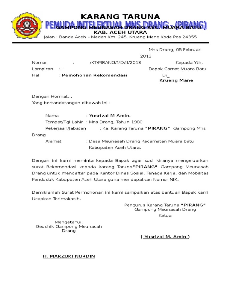 Contoh Surat Rekomendasi Camat Pdf