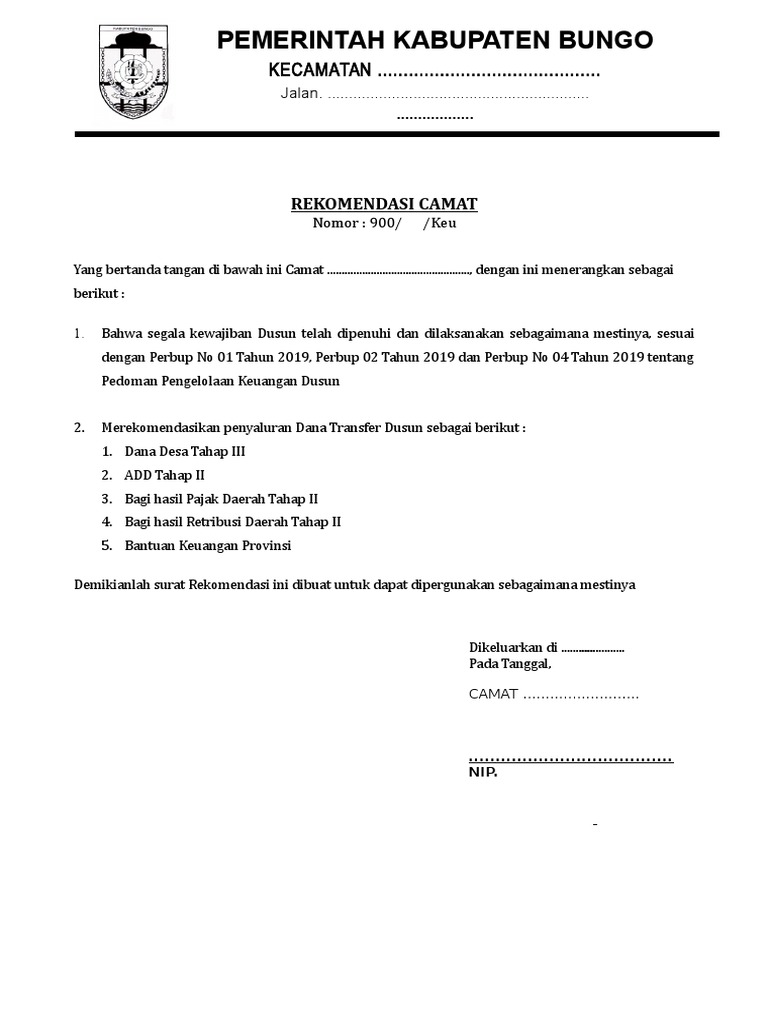 Surat rekomendasi camat dapat didefinisikan diartikan sebagai surat yang didalamnya berisikan tentang persetujuan camat mengenai sesuatu pekerjaan yang menyangkut di. Pemohon menerima pengesahan surat rekomendasi pencairan add dan dd. Sebelum sobat desa mendownload contoh format nya kami pikir tidak ada salahnya untuk menyimak cuplikan isi atau redaksi teks penulisan contoh surat permohonan rekomendasi camat tentang mutasi perangkat desa.