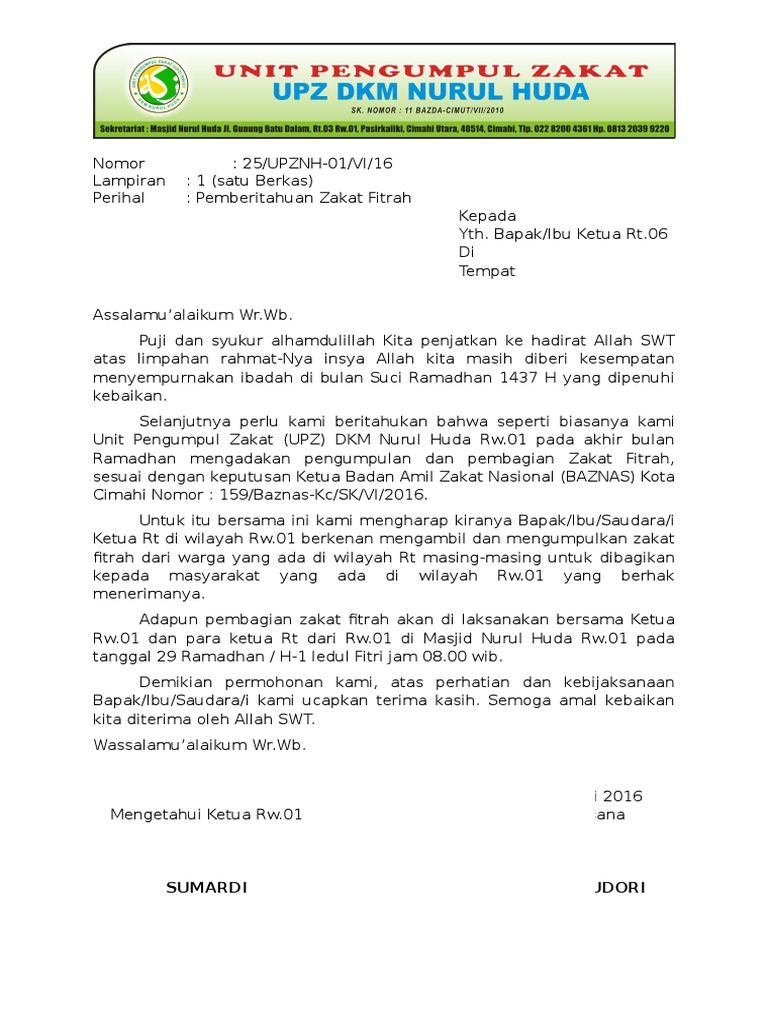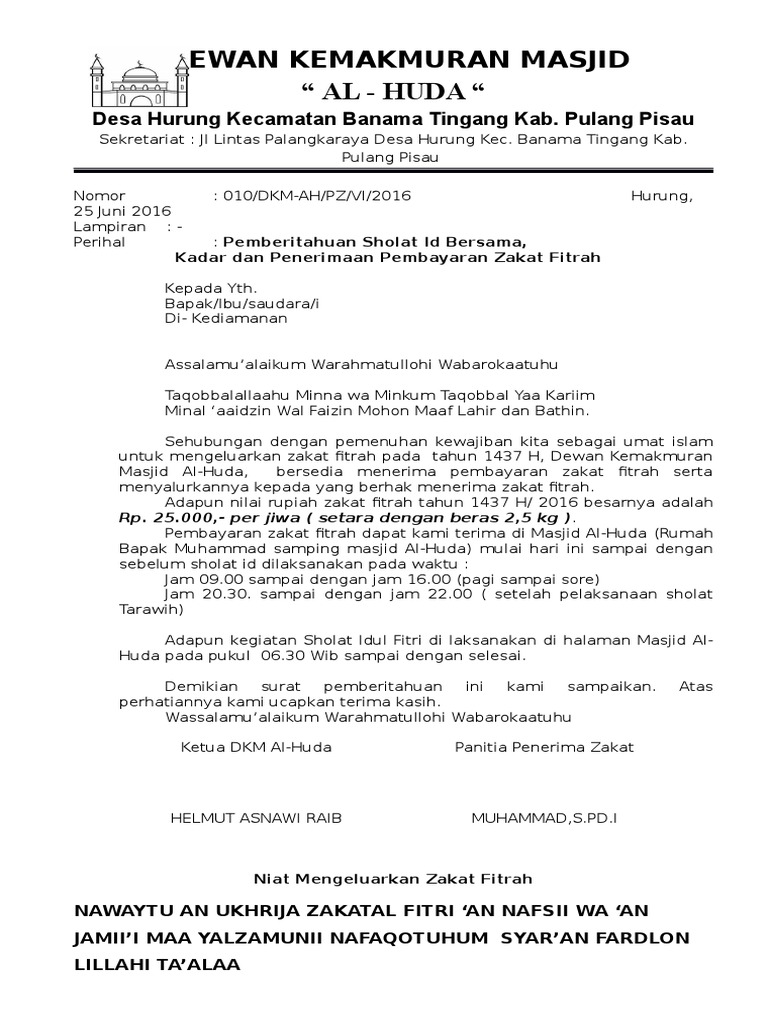 Surat Pemberitahuan Zakat Fitrah Pdf