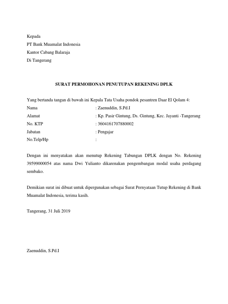 10 Contoh Surat Penutupan Rekening Bank - Info Duwit