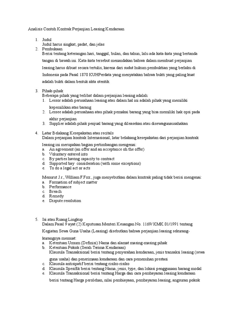 Analisis Contoh Kontrak Perjanjian Leasing Kendaraan Pdf