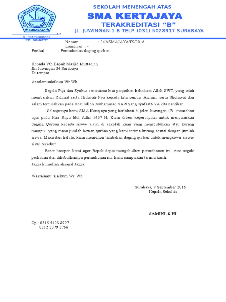 Surat permohonan daging qurban 2016. Contoh surat permohonan hewan qurban have an image from the other contoh. Surat yang resmi biasanya ditujukan kepada suatu instansi.