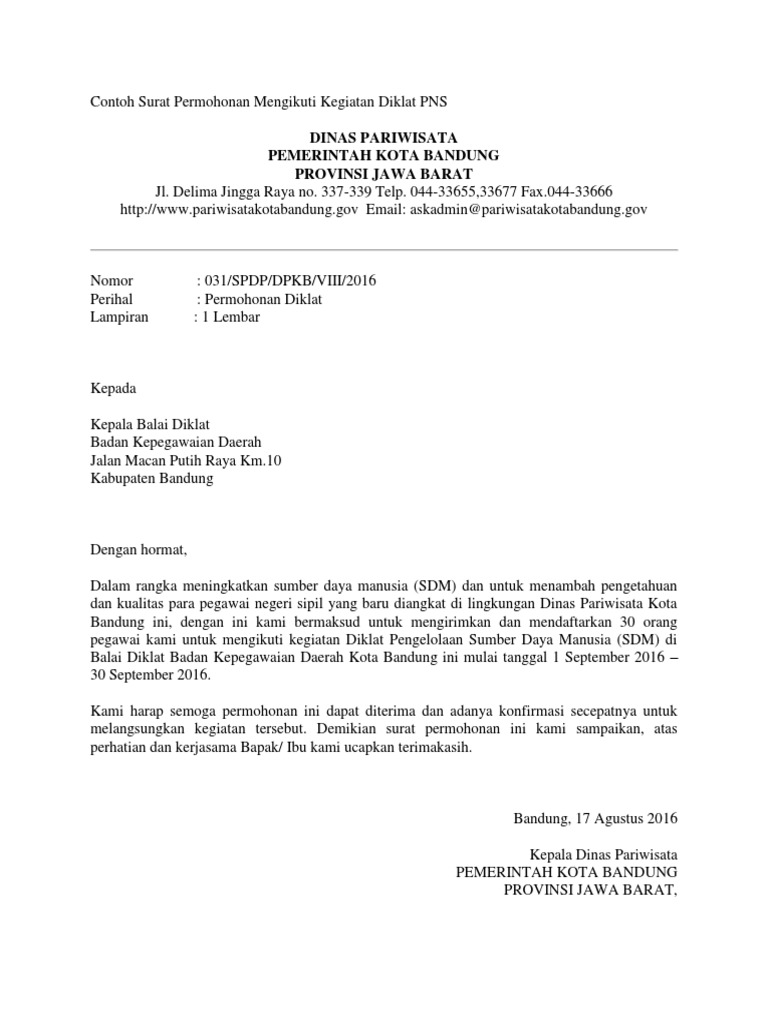 Contoh Surat Permohonan Mengikuti Kegiatan Diklat Pns Pdf