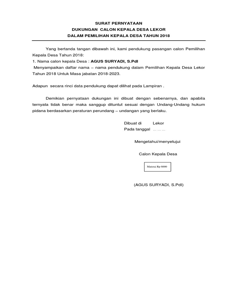 Contoh Surat Pernyataan Dukungan Calon Kepala Desa - Bagikan Contoh