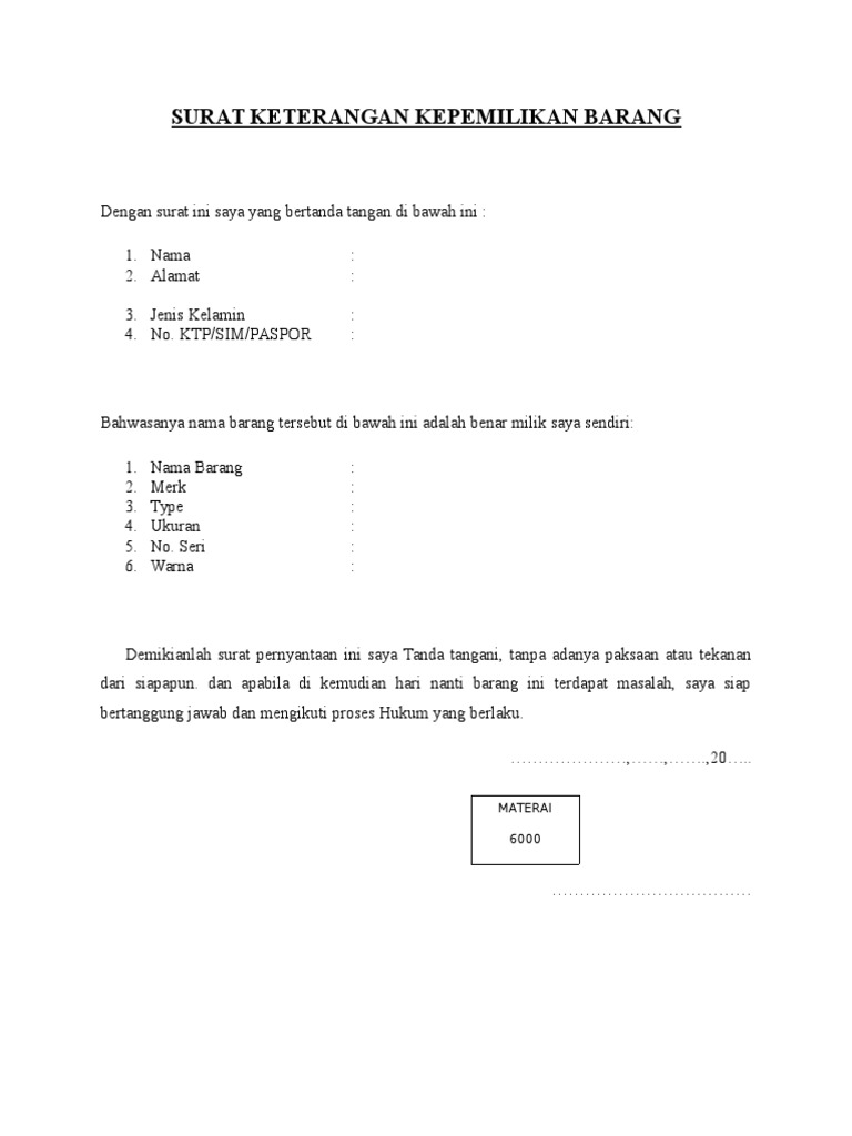 Surat Keterangan Kepemilikan Barang Pdf