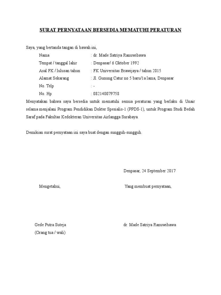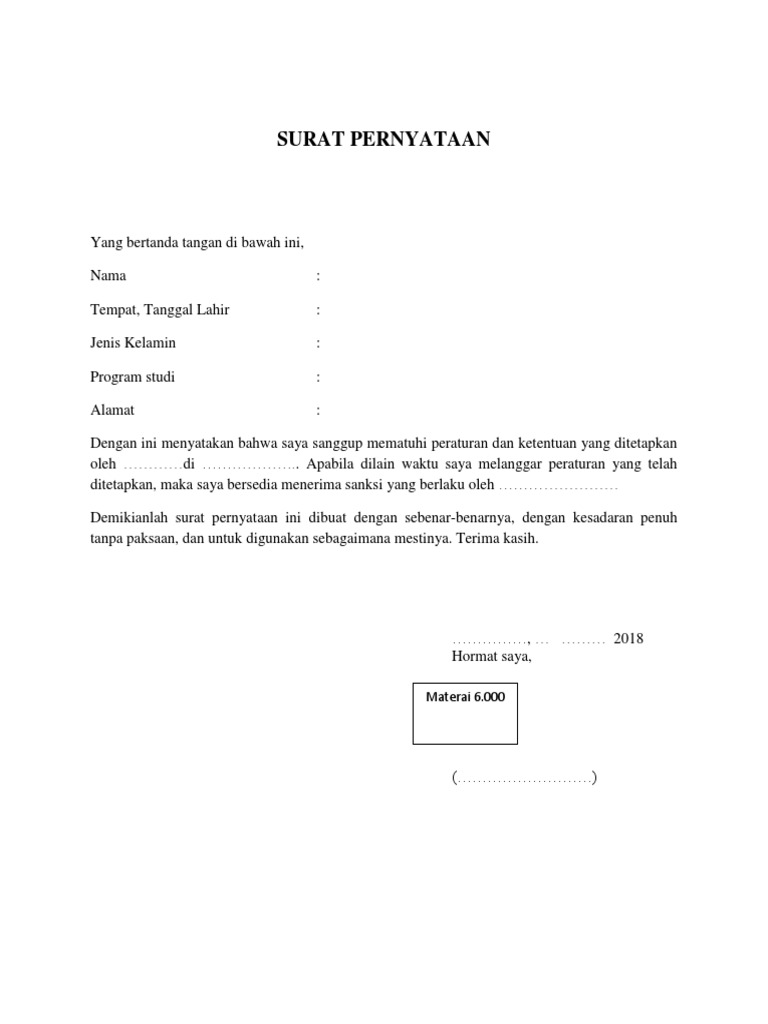 Surat Pernyataan Bersedia Mematuhi Peraturan Pdf