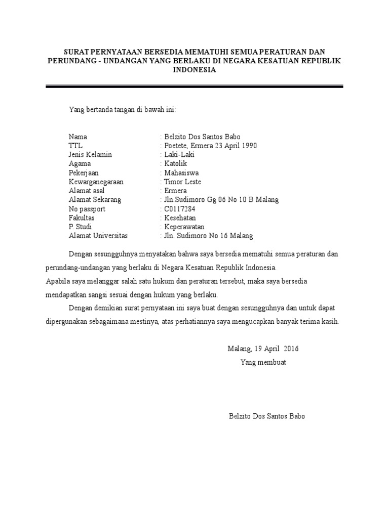 Surat Pernyataan Bersedia Mematuhi Semua Peraturan Dan Perundang Pdf