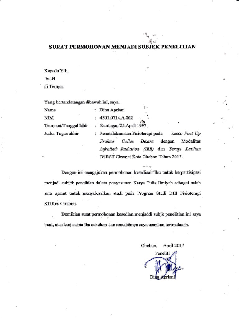 Surat Permohonan Menjadi Subjek Penelitian Pdf
