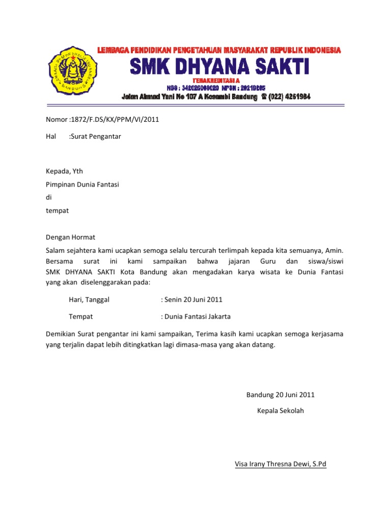 Puji syukur kami panjatkan kehadirat tuhan yang maha esa yme. Surat pengantar ijin belajar terbaru. Pendahuluan study tour merupakan kegiatan rutin yang dilaksanakan sekolah setiap baca selengkapnya.