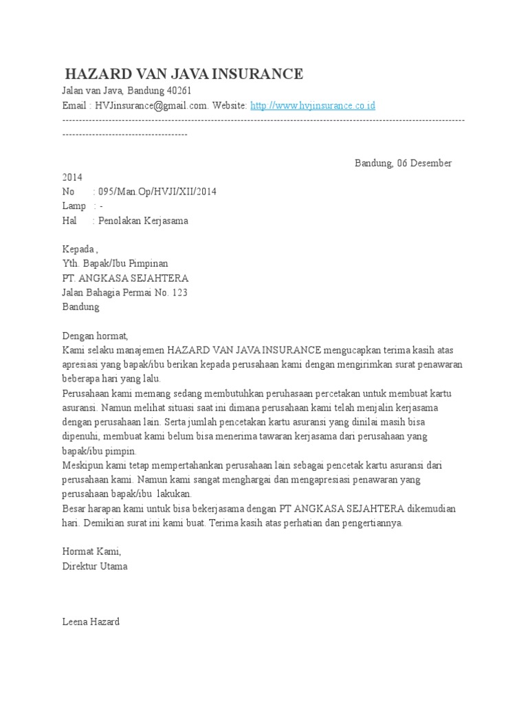 Surat Penolakan Penawaran Ke Pt Laju Jaya Contoh Surat Pdf