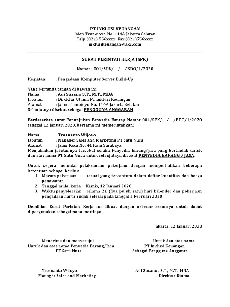 Contoh Surat Perintah Kerja Proyek - Contoh Surat