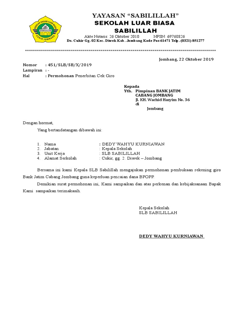 Kop sekolah jakarta tanggal pembuatan surat perihal. Contoh surat permohonan penerbitan buku cek tips solusi. Inilah pembahasan selengkapnya mengenai contoh surat permohonan penerbitan buku cek atau giro.