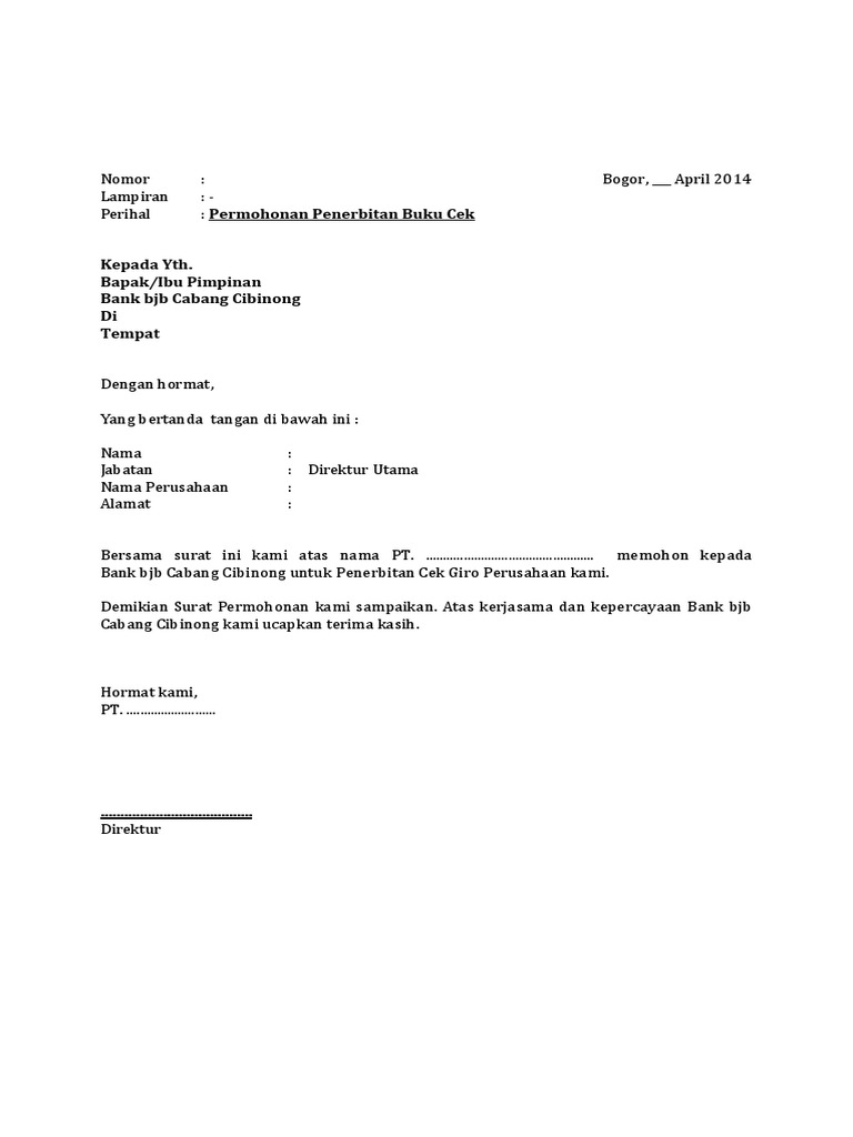 Dengan ini memohon penerbitan buku cek giro atas nama cv. Kali ini kita membahas tentang surat permohonan penerbitan buku cek. The collection that comprising chosen picture and the best among others.