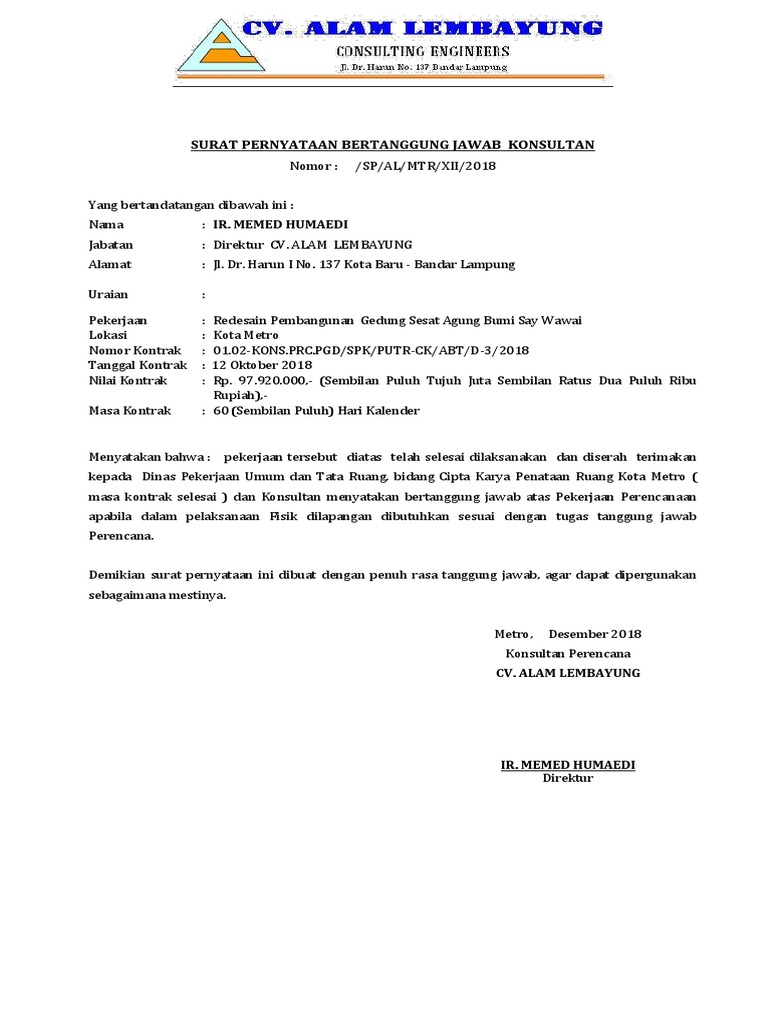 Surat Pernyataan Bertanggung Jawab Konsultan Pdf