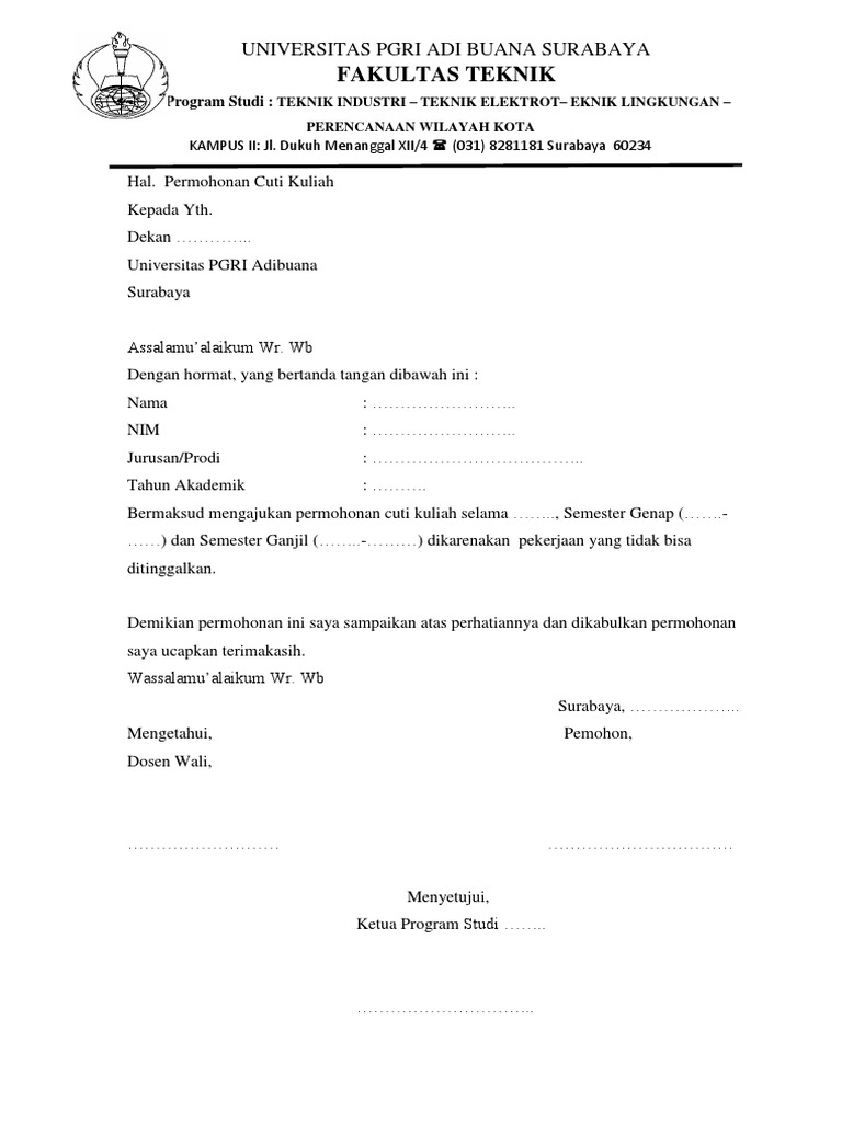 Surat Cuti Kuliah Pdf