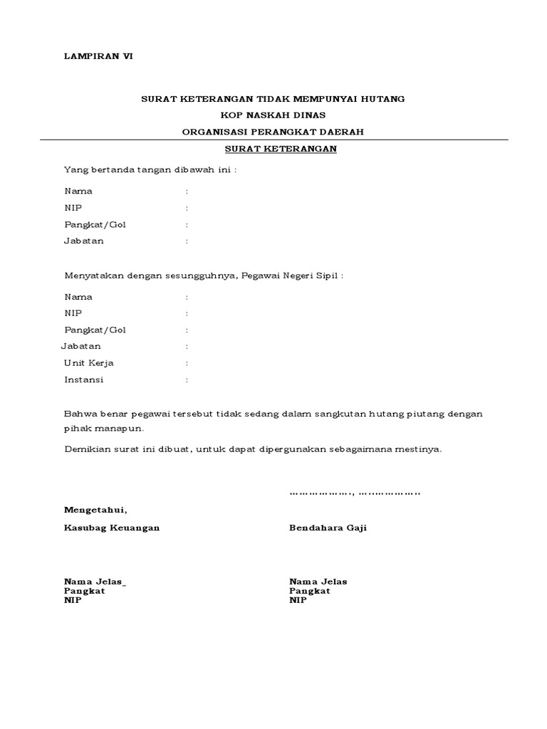 Surat Pernyataan Tidak Punya Hutang Pdf Pdf