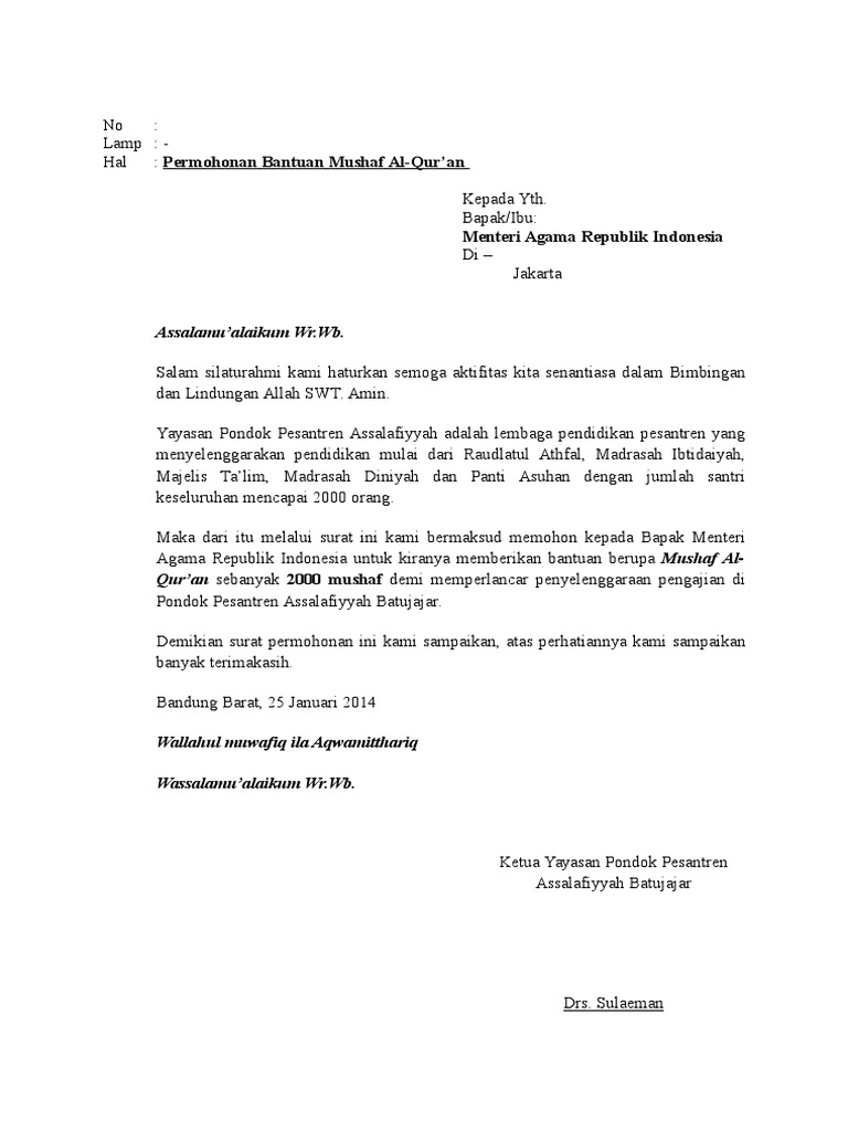 Contoh Surat Permohonan Bantuan Al Quran - Kumpulan Contoh Surat Dan Soal Terlengkap