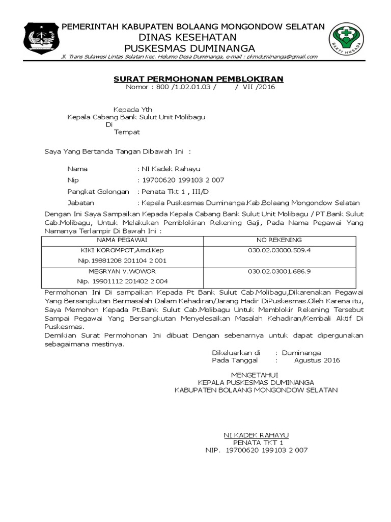 Surat Pemblokiran Rek Gaji Pdf