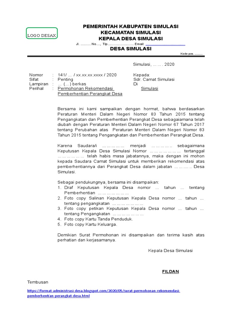 Surat Permohonan Rekomendasi Pemberhentian Perangkat Desa Karena Habis Masa Jabatan Pdf