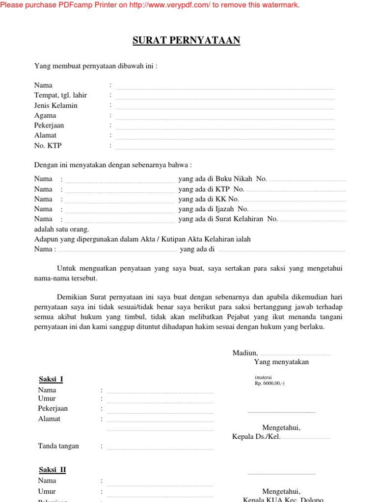 Surat Pernyataan Beda Nama Baru 2011 Pdf