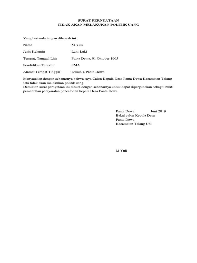 Surat Pernyataan Politik Uang Pdf