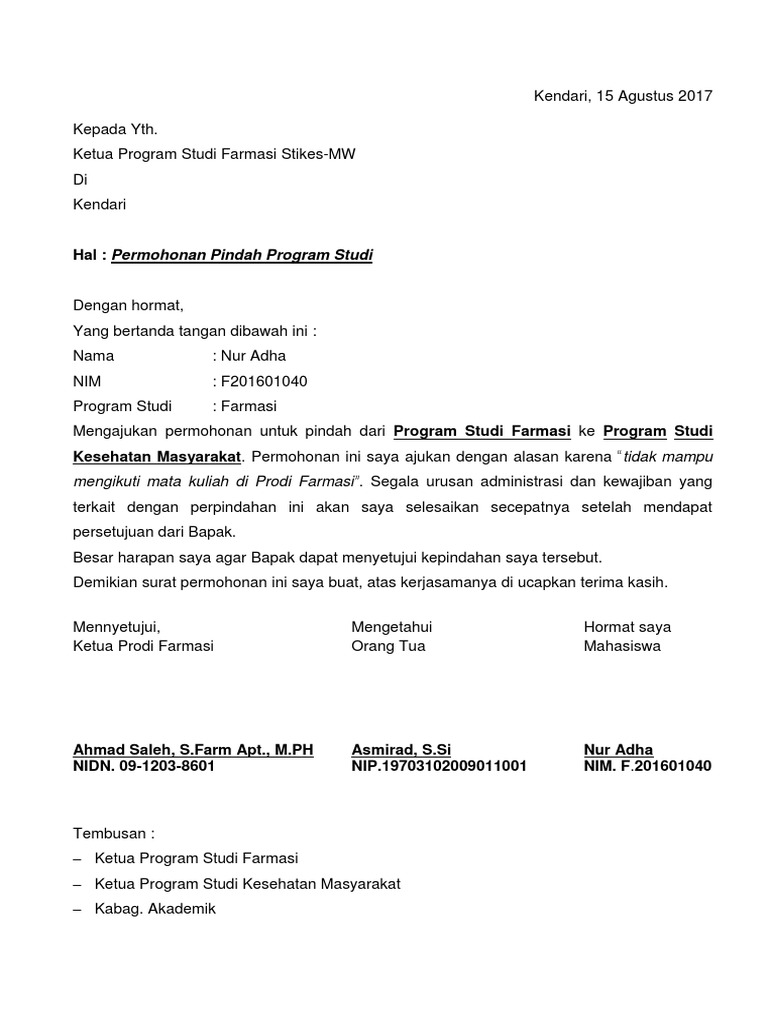 Surat Permohonan Pindah Jurusan Pdf
