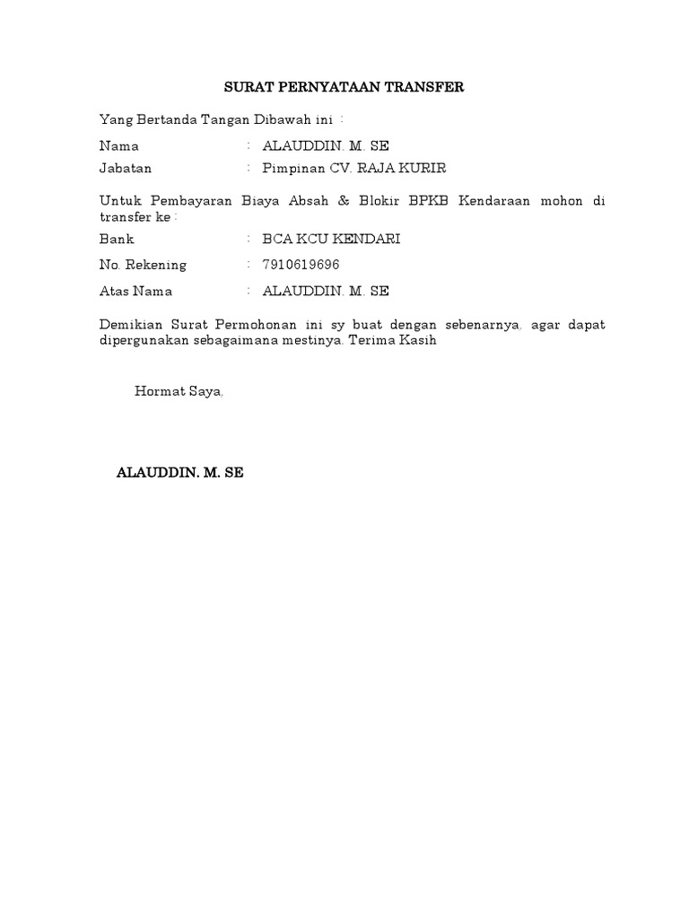 Surat pernyataan transfer. They are so many great picture list that may become your ideas and informational reason for contoh surat permohonan transfer design ideas on your own collections. Dalam hal ini bertindak dalam jabatannya tersebut dari dan karenanya sah dan berwenang untuk. Dalam surat pernyataan salah transfer resmi, sebelum dibubuhi tanda tangan, surat tersebut harus diberi meterai rp 10.000 terlebih dahulu.