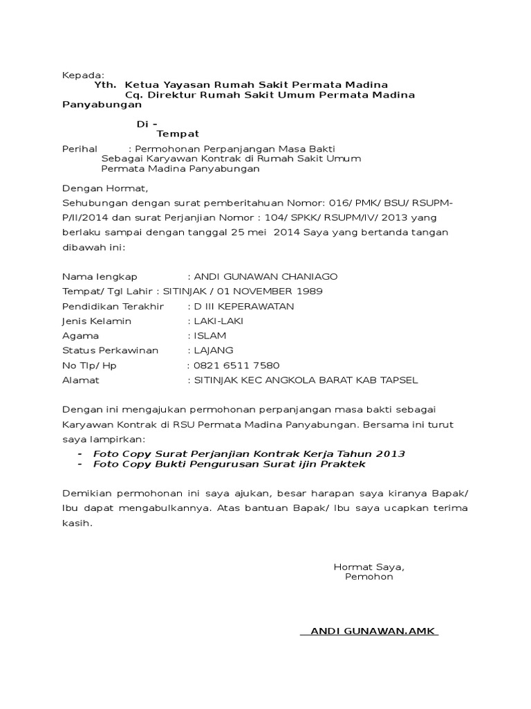 Doc Contoh Surat Permohonan Perpanjangan Kontrak Kerja Mella Tina - Academiaedu