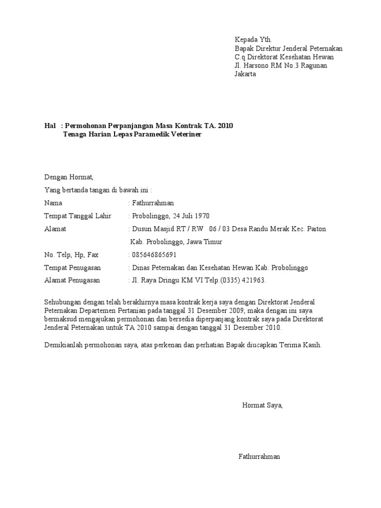 Contoh Surat Lamaran Kerja Untuk Perpanjangan Kontrak - Bagi Contoh Surat