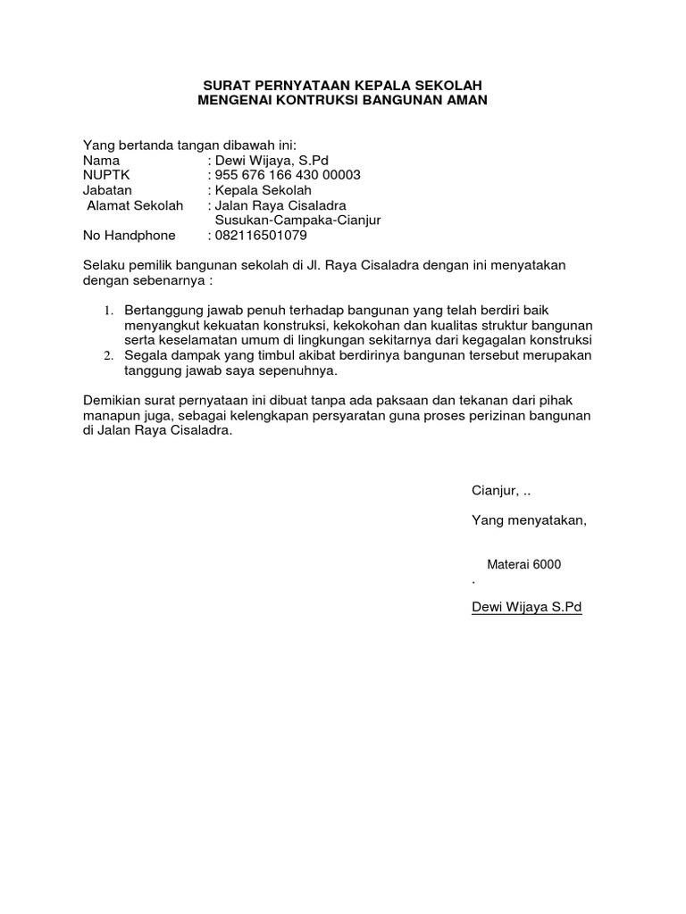Contoh Surat Pernyataan Kepala Sekolah Untuk Guru - Contoh Surat